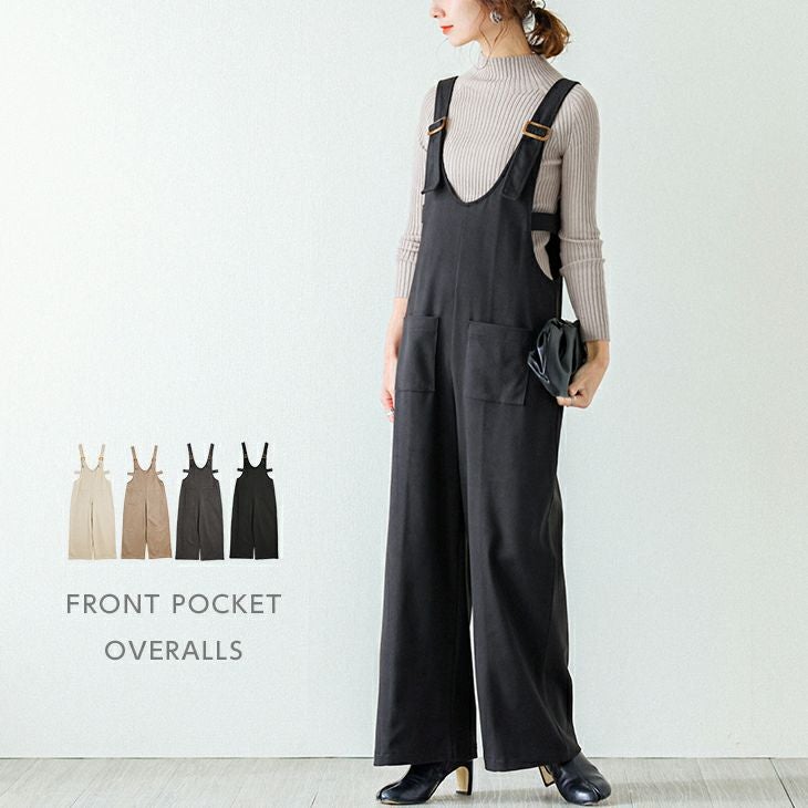 フロントポケット サロペット レディース オールインワン フロントポケット サロペット レディース オールインワン 楽ちん 体型カバー パンツ ワイドパンツ 大人 ゆったり メルトン素材 おすすめ 上品 無地 おしゃれ メール便 2025秋新作 【lgww-at5020】【即納:1-5営業日】【送料無料】ヤ込1