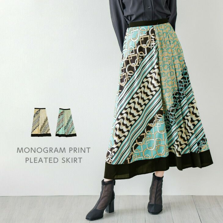 スカート ロング丈 ボトムス レディース おすすめ プリント アシンメトリー プリーツ スカート ロング丈 ボトムス 総柄 個性的 モノグラム きれいめ ガーリー 女子会 デート レディース おすすめ おしゃれ メール便 2025秋新作 【lgww-at5055】【即納:1-5営業日】【送料無料】メ込2