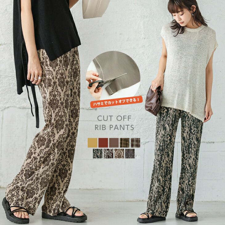 セルフカット リブパンツ プリーツ ロング ワイド セルフカット リブパンツ プリーツ ロング ワイド パンツ リラックスパンツ ゆったり カラーパンツ ウエストゴム ルームウエア カットオフ 2025秋新作 【lgww-at5126】【即納:1-5営業日】【送料無料】メ込2