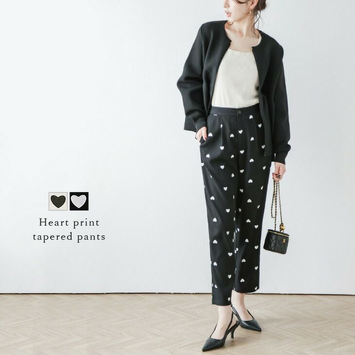 ハート柄 プリント スラックス テーパード パンツ 【春夏半額SALE対象】 ハート柄 プリント スラックス テーパード パンツ バックウエストゴム レディース おすすめ おしゃれ メール便 2025春夏新作 【lsbt304-648】【即納:1-5営業日】【送料無料】ユ込3