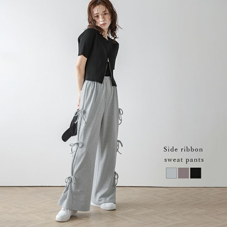 スウェット パンツ リボン ワイドパンツ ボトムス スウェット パンツ リボン ワイドパンツ ボトムス 大人カジュアル 可愛い レディース おすすめ おしゃれ フリーサイズ 2025春夏新作 【lsbtss24-284】【即納:1-5営業日】【送料無料】60込