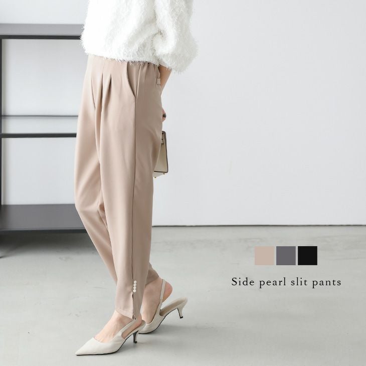 パンツ テーパード パール スリット タック 【春夏半額SALE対象】 パンツ テーパード パール スリット タック 美脚 美シルエット オフィス オケージョン キレイめ レディース おすすめ おしゃれ フリーサイズ メール便 2025春夏新作【lsbtss25-1042】【即納:1-5営業日】【送料無料】メ込2