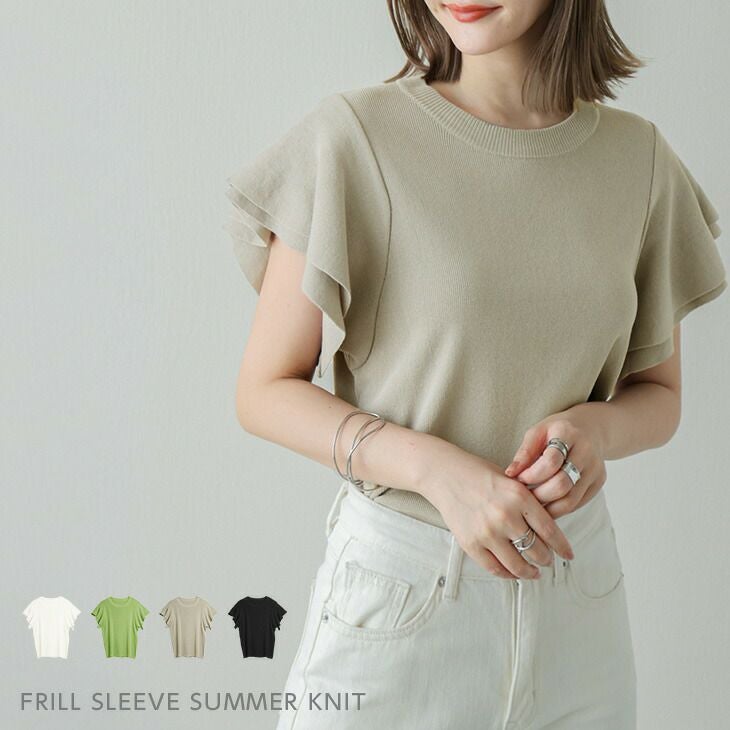 サマーニット ラウンドネック フリル袖 二重フリル トップス サマーニット ラウンドネック フリル袖 二重フリル トップス 大人 上品 レディース おすすめ おしゃれ ブラック メール便 2025春夏新作 【lsot203-334】【即納:1-5営業日】【送料無料】ユ込3