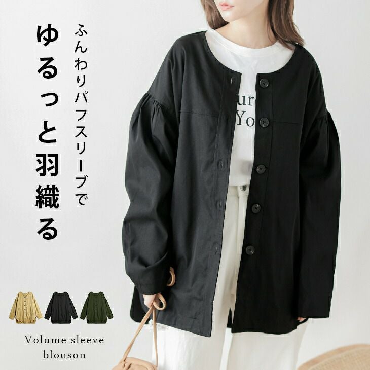 ブルゾンジャケット ボリュームスリーブ パフスリーブ アウター ブルゾンジャケット ボリュームスリーブ パフスリーブ アウター スリット レディース おすすめ おしゃれ ブラック フリーサイズ メール便 2025秋新作 【lsot205-367】【即納:1-5営業日】【送料無料】ヤ込1