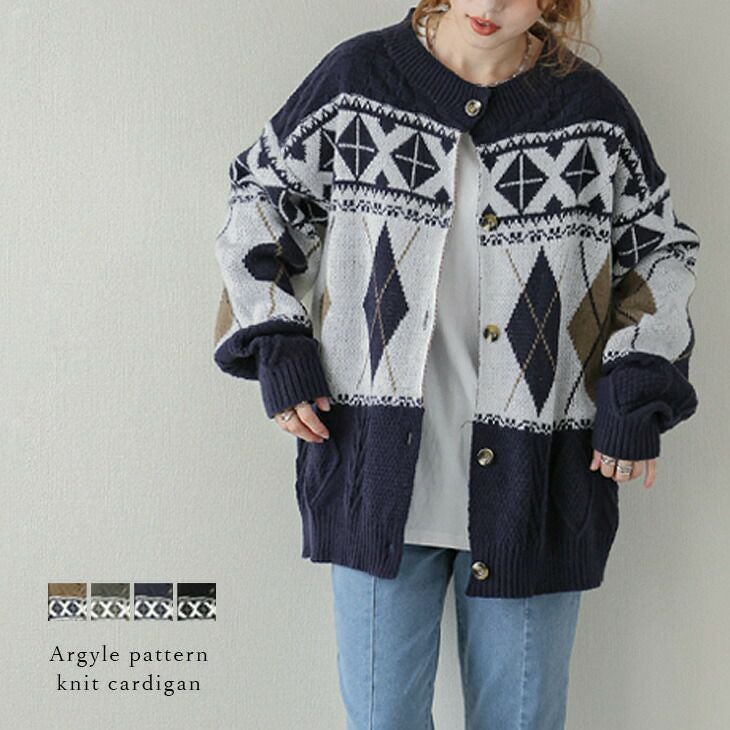 アーガイル柄ニットカーディガン カーディガン アーガイル柄 アーガイル柄ニットカーディガン カーディガン ニット アーガイル柄 トップス レディース おすすめ おしゃれ ブラック フリーサイズ 2025秋新作 【lsot207-644】【即納:1-5営業日】【送料無料】宅込