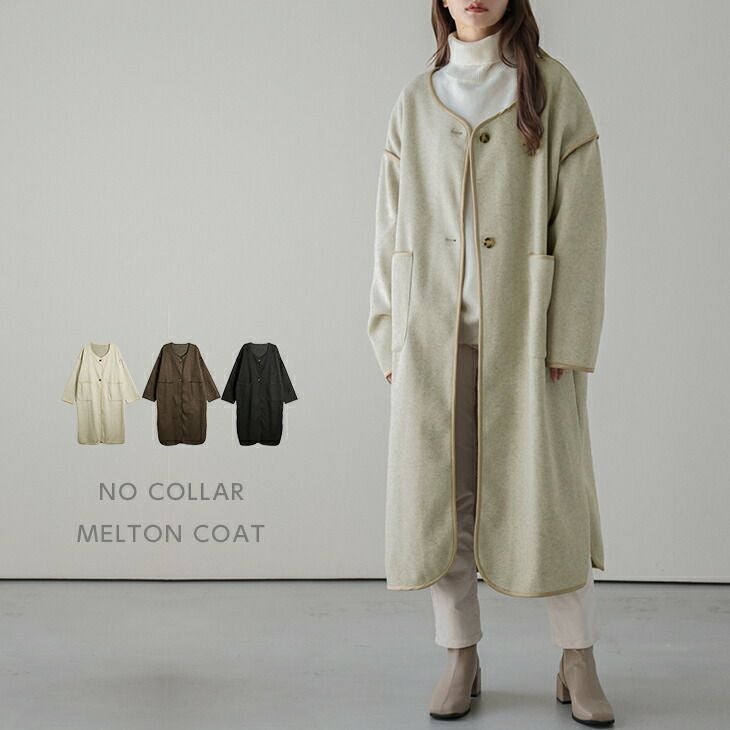 ノーカラーメルトンコート コート ノーカラー メルトン ノーカラーメルトンコート コート ロングコート ノーカラー メルトン アウター サイドスリット オーバーサイズ レディース おしゃれ フリーサイズ 2025秋新作 【lsot208-663】【即納:1-5営業日】【送料無料】宅込