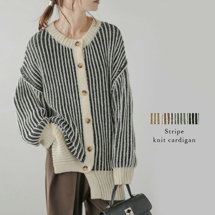 ニットカーディガン ストライプ トップス レディース 【秋冬半額SALE対象】 ニットカーディガン ストライプ ぽわん袖 トップス レディース おすすめ おしゃれ 大人可愛い フリーサイズ 2025春夏新作 【lsot301-88b】【予約販売:(1)11月2日/(2)11月9日入荷予定順次発送】【送料無料】宅込