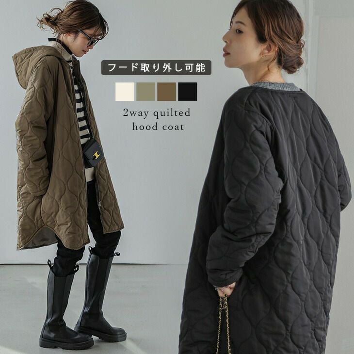 2way キルティング フード コート 着脱 2way キルティング フード コート 着脱 ノーカラー ミドル丈 レディース おすすめ おしゃれ ブラック フリーサイズ 2025春夏新作 【lsot304-368】【即納:1-5営業日】【送料無料】宅込