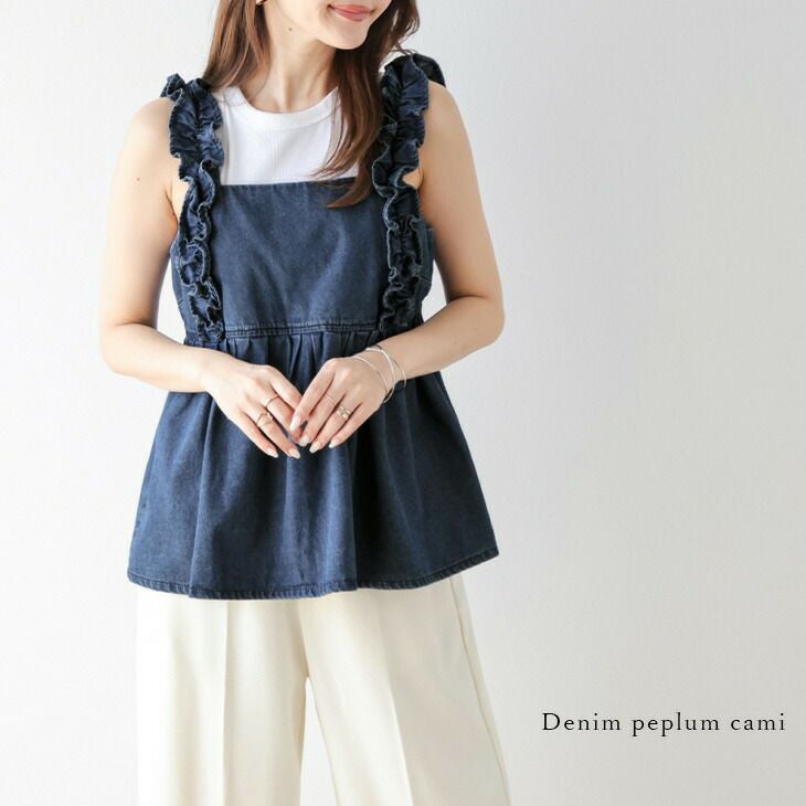 デニム ペプラムキャミソール フリルショルダー 【春夏半額SALE対象】 デニム ペプラムキャミソール フリルショルダー 体型カバー ヴィンテージライク 大人可愛い トレンド レディース おすすめ おしゃれ メール便 2025春夏新作【lsot304-646】【即納:1-5営業日】【送料無料】メ込2