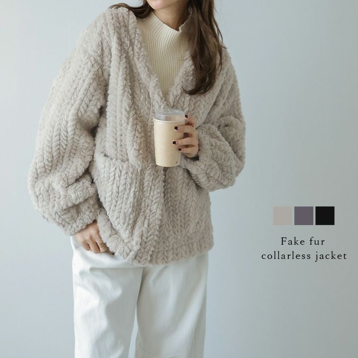 フェイクファージャケット ノーカラー カーディガン フェイクファージャケット ノーカラー カーディガン アウター 大人可愛い レディース おすすめ おしゃれ フリーサイズ 2025春夏新作【lsot304-664】【即納:1-5営業日】【送料無料】宅込