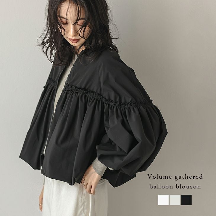ギャザー バルーンスリーブ ノーカラー ブルゾン アウター 【秋冬半額SALE対象】 ギャザー バルーンスリーブ ノーカラー ブルゾン アウター フェミニン アウター レディース おすすめ おしゃれ フリーサイズ 2025春夏新作 【lsotaw24-714】【即納:1-5営業日】【送料無料】メ込2