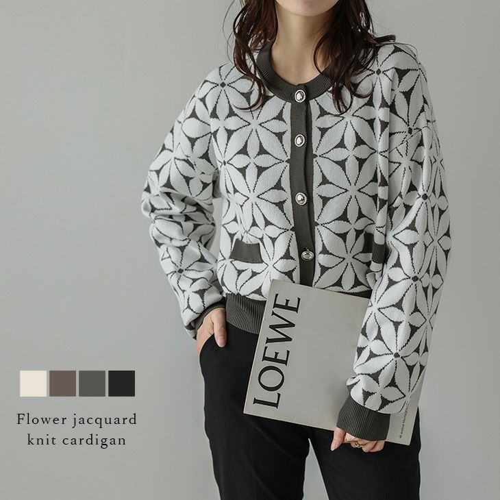 カーディガン ジャガードニット 花柄 幾何学模様 メッキ釦 【秋冬半額SALE対象】 カーディガン ジャガードニット 花柄 幾何学模様 メッキ釦 フラワー キレイめ オフィス トップス レディース おすすめ おしゃれ 2025春夏新作 【lsotaw24-776】【即納:1-5営業日】【送料無料】60込