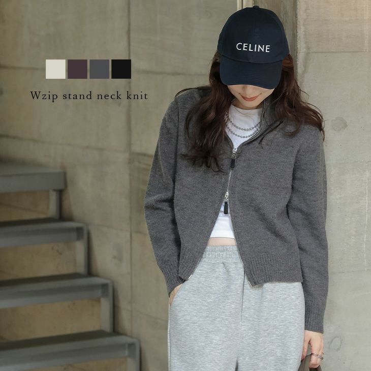 ニット Wジップ 羽織り スタンドネック 抜け感 【秋冬半額SALE対象】 ニット Wジップ 羽織り スタンドネック 抜け感 トレンド シンプル レイヤード トップス レディース おすすめ おしゃれ 2025秋冬新作 【lsotaw25-1494】【即納:1-5営業日】【送料無料】宅込