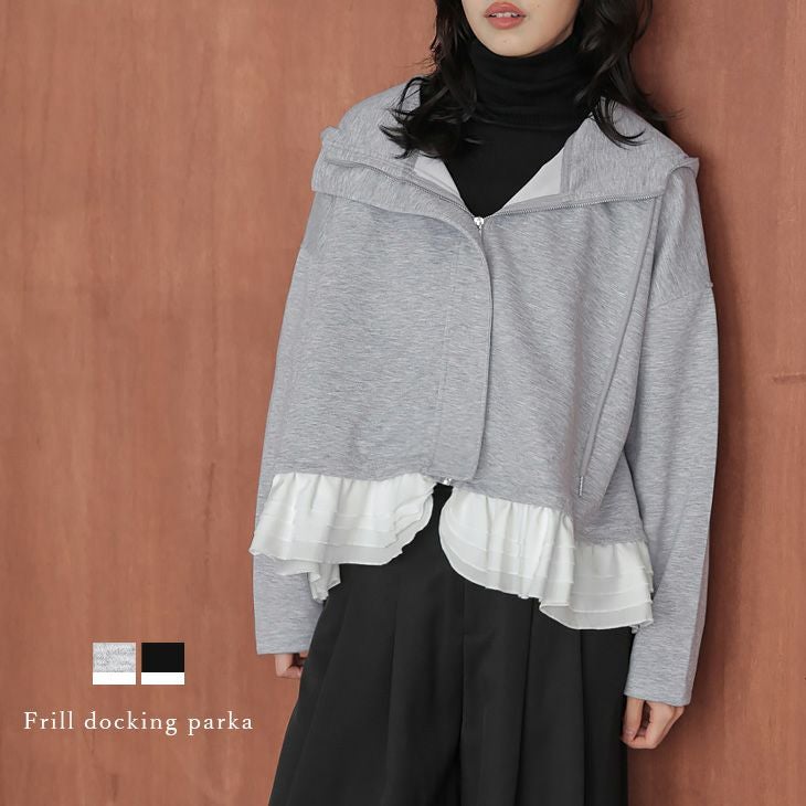 フリルドッキング パーカー ポンチ 長袖 ドロップショルダー 【秋冬半額SALE対象】 フリルドッキング パーカー ポンチ 長袖 ドロップショルダー 華奢見え ライトアウター 体型カバー レディース おすすめ おしゃれ 2025秋冬新作 【lsotaw25-1714】【即納:1-5営業日】【送料無料】宅込