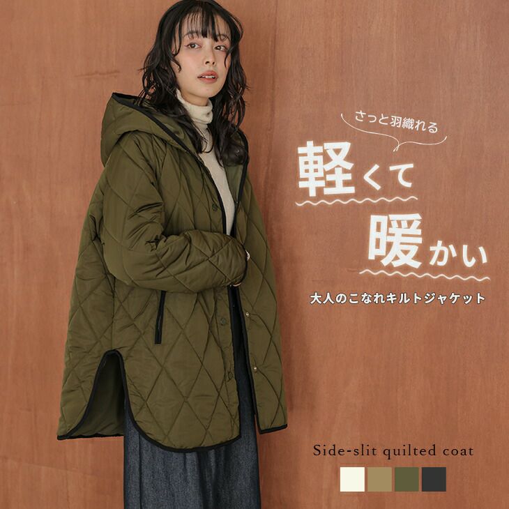 キルティングコート サイドスリット フード パイピング 【秋冬半額SALE対象】 キルティングコート サイドスリット フード パイピング ダイヤキルト ミドル丈 防寒着 スナップボタン 秋冬アウター レディース おすすめ おしゃれ 2025秋冬新作 【lsotaw25-1790】【即納:1-5営業日】【送料無料】宅込