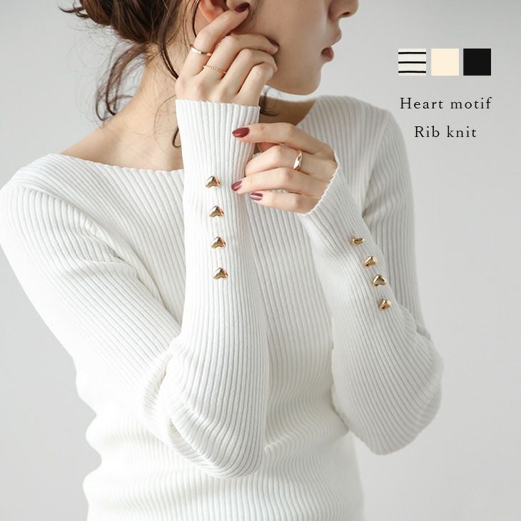 ハートボタン リブニット トップス 可愛い デザイン袖 【秋冬半額SALE対象】 ハートボタン リブニット トップス 大人可愛い デザイン袖 シンプル 大人可愛い キレイめ トップス レディース おすすめ おしゃれ フリーサイズ メール便 2025春夏新作 【lss24-tp137】【即納:1-5営業日】【送料無料】ユ込3