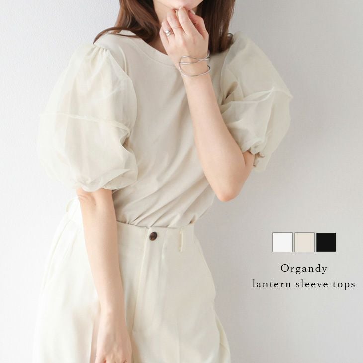 オーガンジー シアー袖トップス ランタンスリーブ オーガンジー シアー袖トップス ランタンスリーブ サイドスリット 異素材MIX レディース おすすめ おしゃれ フリーサイズ メール便 2025春夏新作【lss24-tp138】【即納:1-5営業日】【送料無料】ユ込3