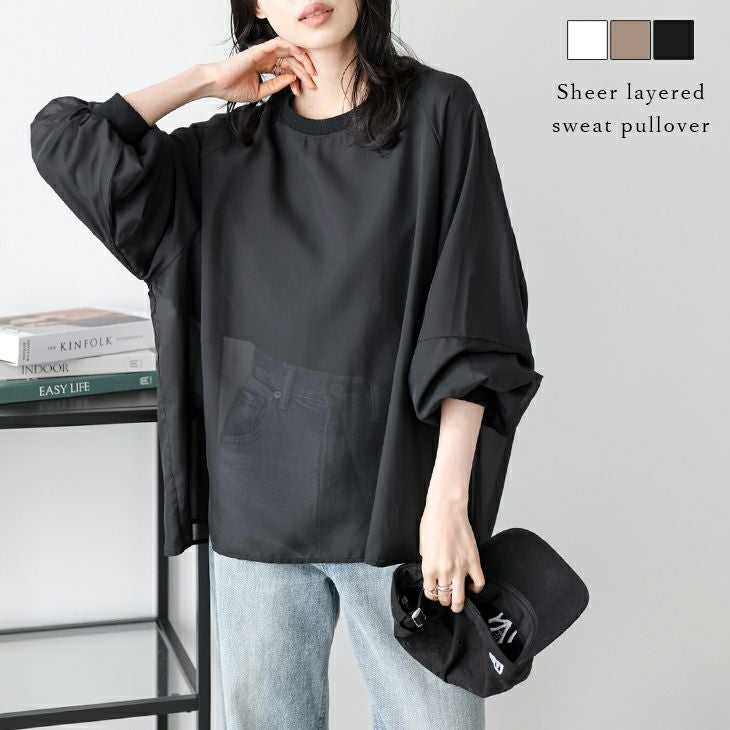 スウェット シアー レイヤード プルオーバー ボリューム袖 スウェット シアー レイヤード プルオーバー ボリューム袖 トレーナー 長袖 ゆったり トップス レディース おすすめ おしゃれ 2025春夏新作 【lss24-tp151】【即納:1-5営業日】【送料無料】メ込2