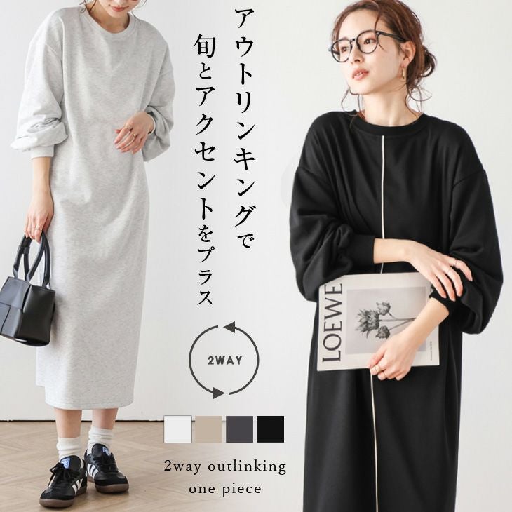 前後2way アウトリンキング ワンピース ドロップショルダー 【春夏半額SALE対象】 前後2way アウトリンキング ワンピース ドロップショルダー ぽわん袖 ボリュームスリーブ レディース おすすめ フリーサイズ 2025春夏新作 【lss24-wp132】【即納:1-5営業日】【送料無料】60込