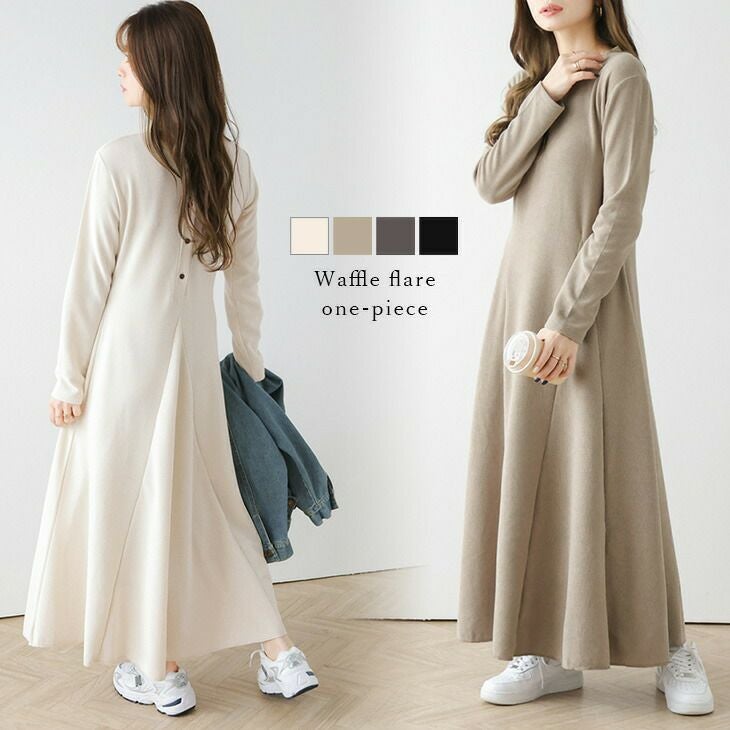 フレアワンピース ワッフル 美シルエット 大人可愛い 【秋冬半額SALE対象】 フレアワンピース ワッフル 美シルエット 大人可愛い カジュアル バックボタン 長袖 シンプル 旅行 デート レディース おすすめ おしゃれ 2025春夏新作 【lss24-wp155】【即納:1-5営業日】【送料無料】60込