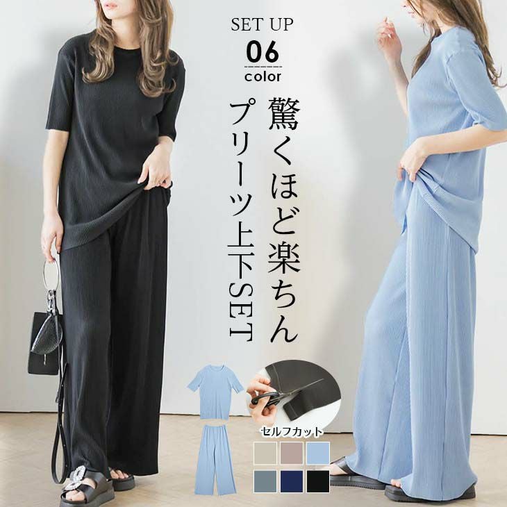 プリーツセットアップ セットアイテム オーバーサイズ 楽ちん 【春夏半額SALE対象】 プリーツセットアップ セットアイテム オーバーサイズ 楽ちん 着痩せ カットオフ レディース おすすめ ブラック フリーサイズ カラバリ豊富 2025春夏新作 【lsse304-50c】【即納:1-5営業日】【送料無料】メ込2