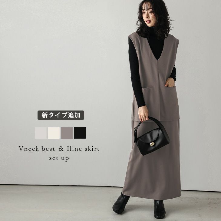 セットアップ Vネック ベスト スカート 抜け感 【秋冬半額SALE対象】 セットアップ Vネック ベスト スカート 抜け感 体型カバー 着回し キレイめ 大人カジュアル トレンド 2点セット レディース おすすめ おしゃれ フリーサイズ 2025春夏新作【lsseaw24-638】【即納:1-5営業日】【送料無料】60込