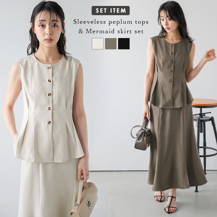 ノースリーブ タック ペプラム トップス マーメイド ノースリーブ タック ペプラム トップス マーメイド フレアスカート セットアップ メリハリ スリット 上品 レディース おすすめ おしゃれ 2026春夏新作 【lssess26-2010】【予約販売:4月30日入荷予定順次発送】【送料無料】宅込