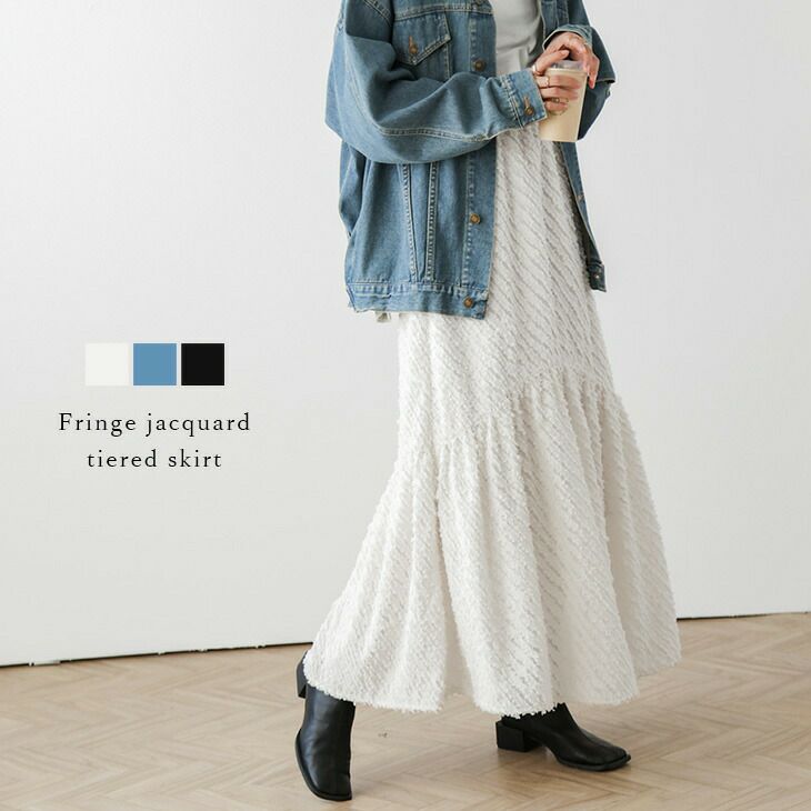 ロングスカート ジャガード フリンジ フレア シフォン 【春夏半額SALE対象】 ロングスカート ジャガード フリンジ フレア シフォン ティアード 大人可愛い ボトムス レディース フリーサイズ メール便 2025春夏新作 【lssk304-433】【即納:1-5営業日】【送料無料】メ込4