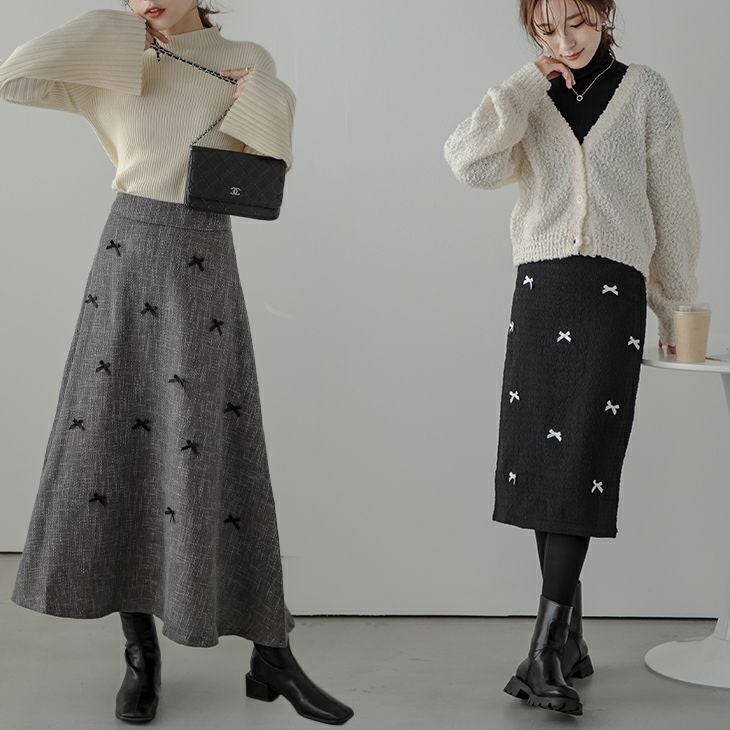ツイード リボン フレアスカート タイトスカート Aライン 【春夏半額SALE対象】 ツイード リボン フレアスカート タイトスカート Aライン ロング丈 ボトムス レディース おすすめ おしゃれ ブラック カラバリ豊富 メール便 2025春夏新作 【lssk304-436】【即納:1-5営業日】【送料無料】メ込2