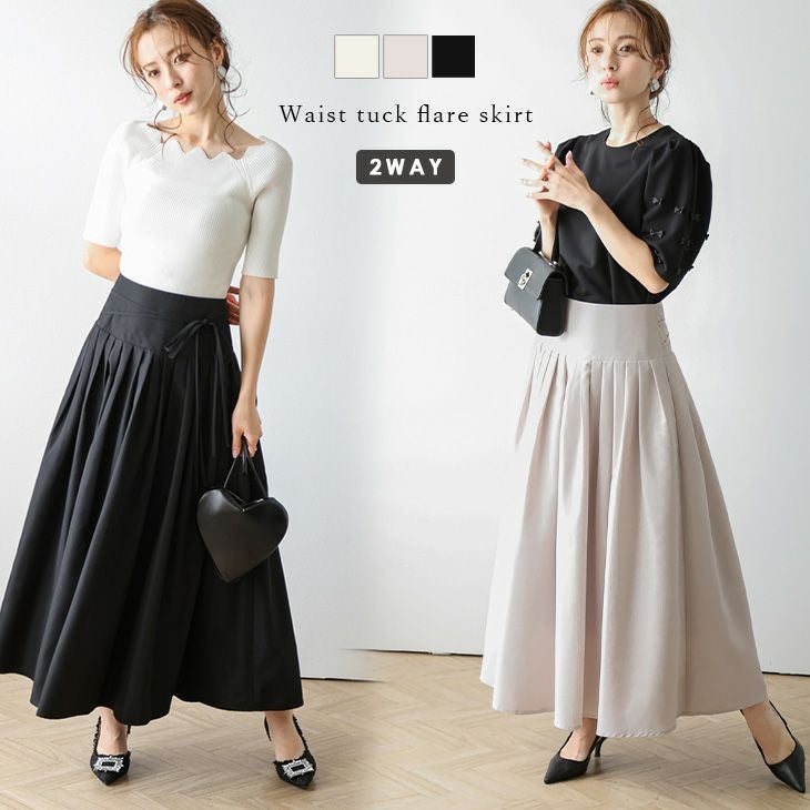 ウエストタック フレアスカート リボン ロング丈 ウエストタック フレアスカート リボン ウエストマーク ロング丈 体型カバー キレイめ 大人かわいい トレンド レディース おすすめ おしゃれ メール便 2025春夏新作【lsskss24-416】【即納:1-5営業日】【送料無料】メ込2