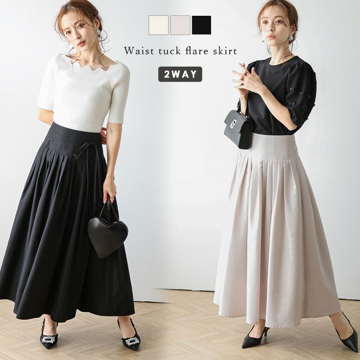 ウエストタック フレアスカート リボン ロング丈 【春夏半額SALE対象】ウエストタック フレアスカート リボン ウエストマーク ロング丈 体型カバー キレイめ 大人かわいい トレンド レディース おすすめ おしゃれ メール便 2025春夏新作【lsskss24-416】【即納:1-5営業日】【送料無料】メ込2