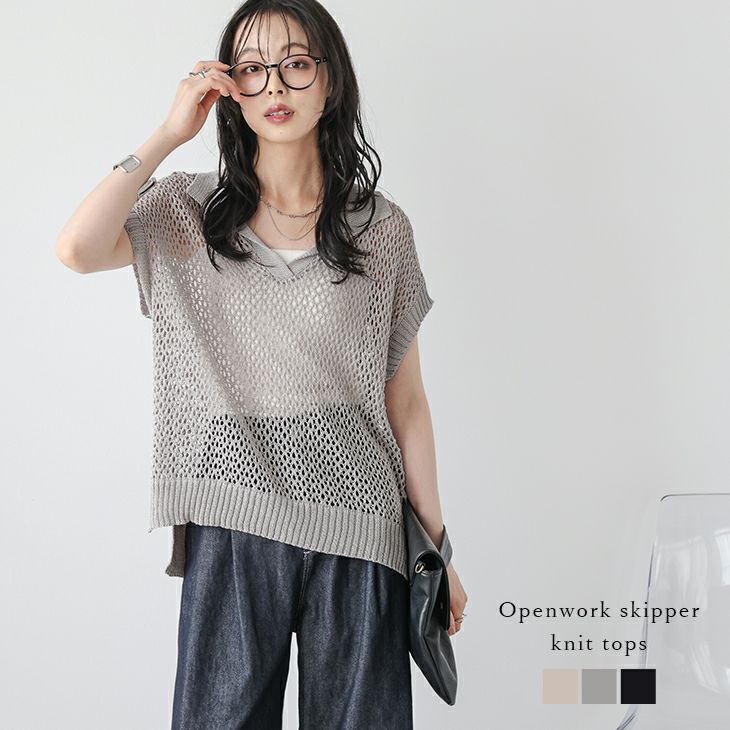 透かし編みニット シアー ポロ スキッパー Vネック 【春夏半額SALE対象】 透かし編みニット シアー ポロ スキッパーデザイン Vネック ドロップショルダー サイドスリット レイヤード 体型カバー レディース おすすめ おしゃれ フリーサイズ メール便 2025春夏新作【lsskss25-1410】【即納:1-5営業日】【送料無料】メ込2