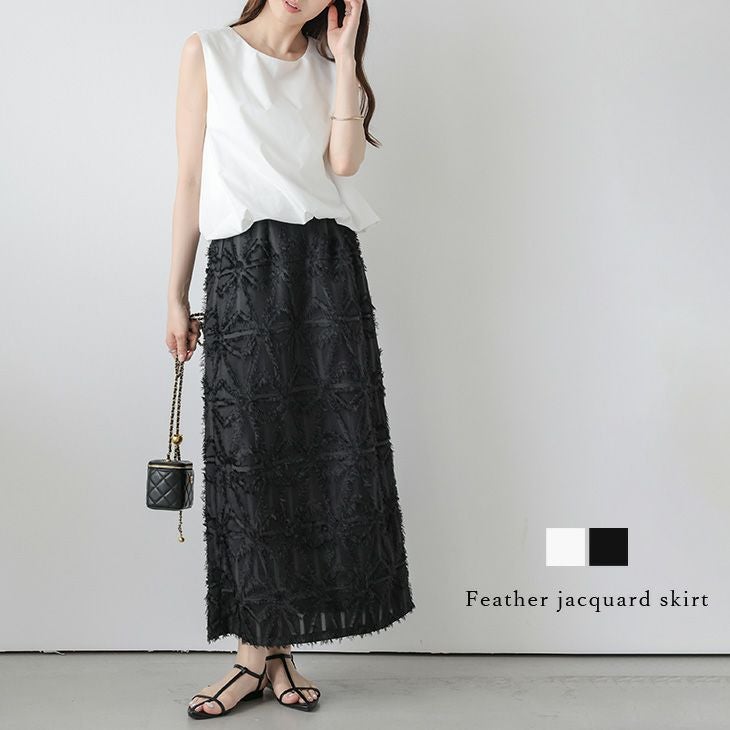 幾何学模様 フェザージャガード スカート 大人かわいい 【春夏半額SALE対象】 幾何学模様 フェザージャガード スカート サイドファスナー バックウエストゴム バックスリット フリンジ シアー レディース おすすめ おしゃれ メール便 2025春夏新作【lsskss25-964】【即納:1-5営業日】【送料無料】メ込2