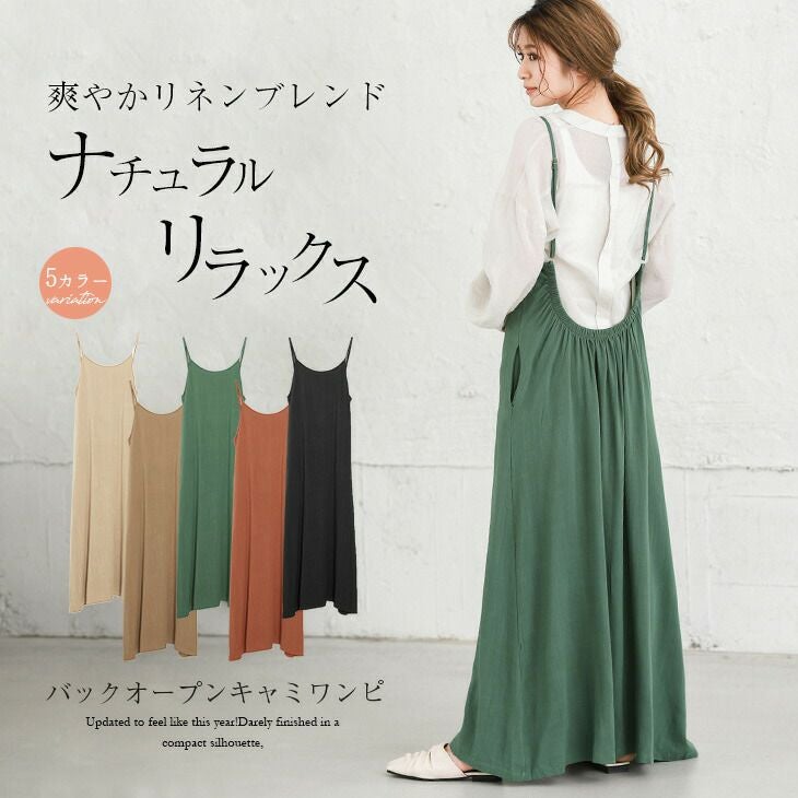 ワンピース レディース マキシ丈 ロング丈 おしゃれ バックオープン キャミソール ワンピース レディース キャミワンピ 夏 麻混 メール便 2025秋新作 フリー 【lssr301-695】【即納:1-5営業日】【送料無料】メ込2