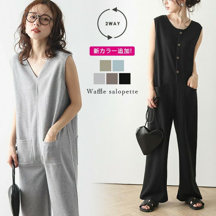 サロペット ワッフル生地 前後2way 大人カジュアル サロペット ワッフル生地 前後2way リラックス 大人カジュアル キレイめ リラクシー レディース おすすめ おしゃれ フリーサイズ メール便 2025春夏新作【lssrss24-400】【即納:1-5営業日】【送料無料】メ込4