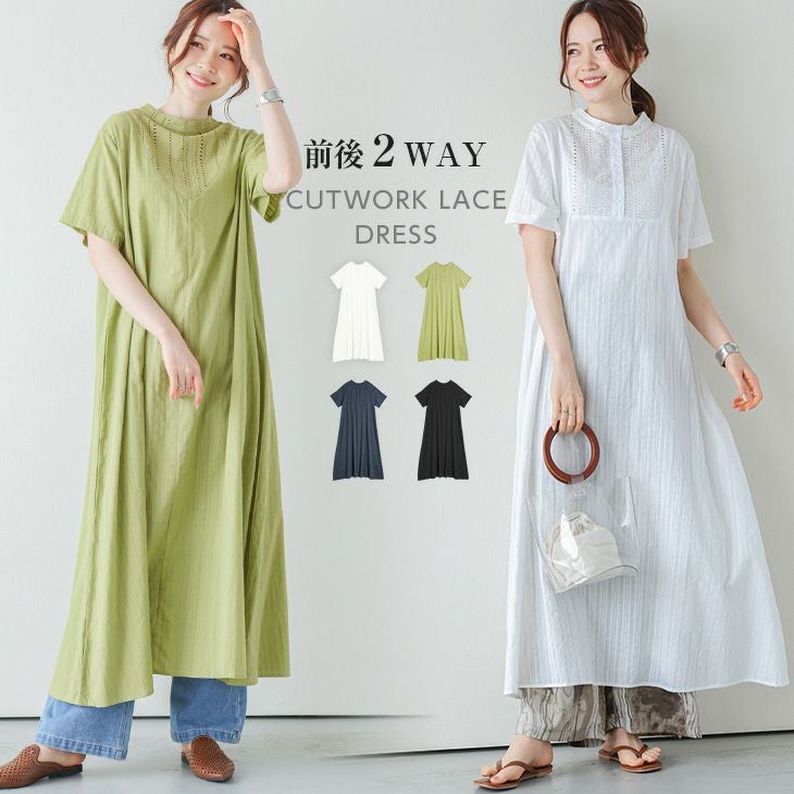 ロングワンピース 2way カットワークレース 綿麻混 半袖 ロングワンピース 2way カットワークレース 綿麻混 半袖 レディース ゆったり おしゃれ ブラック フリーサイズ メール便 2025秋新作 【lstp203-372】【即納:1-5営業日】【送料無料】ヤ込1