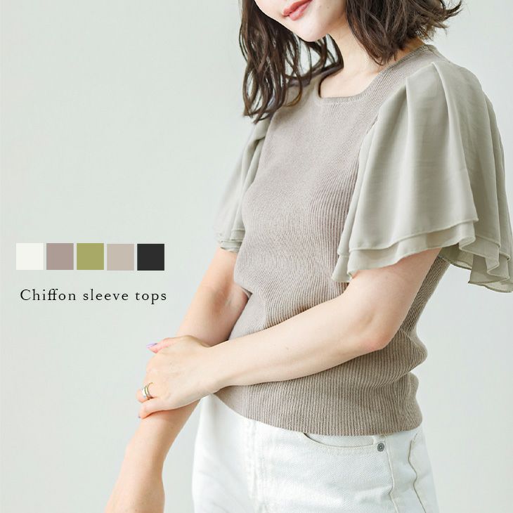 トップス 半袖 シフォン フリル袖 リブニット トップス 半袖 シフォン フリル袖 リブニット 異素材 カットソー レディース メール便 2025春夏新作 【lstp204-364】【即納:1-5営業日】【送料無料】ユ込3