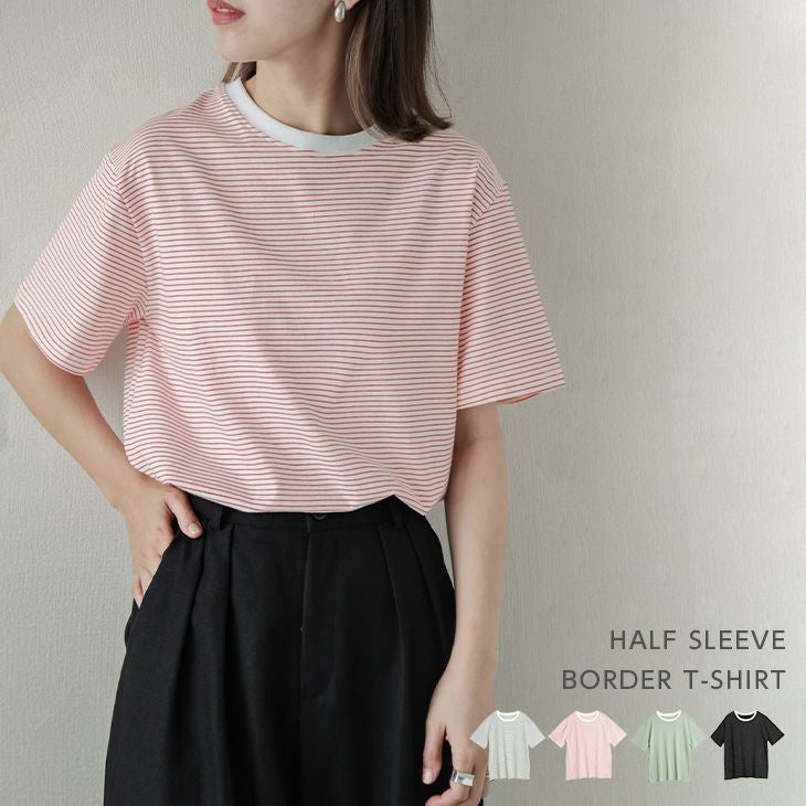ボーダーTシャツ カットソー 半袖 トップス シンプル ボーダーTシャツ カットソー 半袖 トップス シンプル カジュアル レディース おすすめ おしゃれ ブラック フリーサイズ メール便 2025春夏新作 【lstp205-327】【即納:1-5営業日】【送料無料】ユ込3