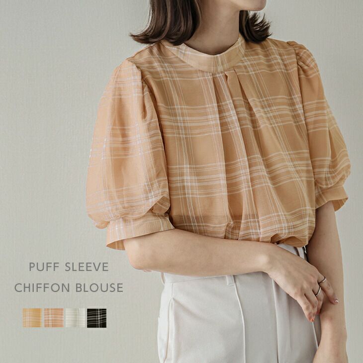 シフォンブラウス モックネック パフスリーブ チェック柄 シフォンブラウス モックネック パフスリーブ チェック柄 フロントタック 5分袖 トップス レディース おすすめ おしゃれ ブラック フリーサイズ メール便 2025秋新作 【lstp205-351】【即納:1-5営業日】【送料無料】ユ込2