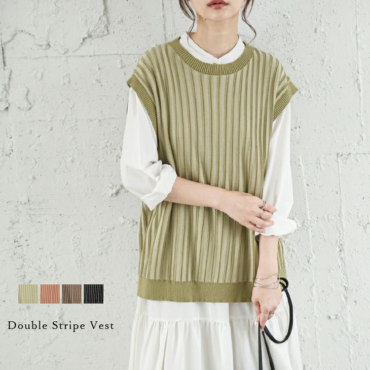トップス ベスト ニット レイヤード ルーズ感 トップス ベスト ニット レイヤード ルーズ感 大人カジュアル レディース おすすめ トレンド ダブルストライプ フリーサイズ 2025秋新作 【lstp205-355】【即納:1-5営業日】【送料無料】ユ込2