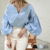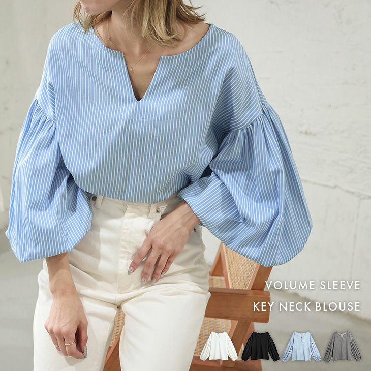 キーネックブラウス ボリューム袖 長袖 バルーン トップス キーネックブラウス ボリューム袖 長袖 バルーン トップス レディース ストライプ おすすめ 着回し おしゃれ ブラック フリーサイズ メール便 2025秋新作 【lstp207-344】【即納:1-5営業日】【送料無料】ヤ込1