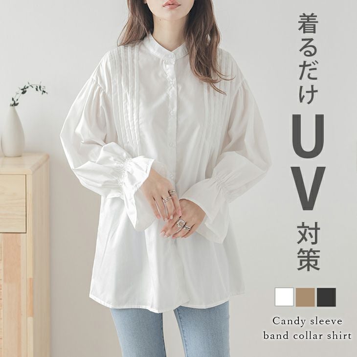 スタンドカラー ブラウス トップス シャツ スタンドカラー ブラウス トップス 紫外線対策 UV対策 シャツ キャンディースリーブ フロントタック ボリューム袖 ロングシーズン 長袖 シンプル 上品 オフィス 通勤 レディース 韓国ファッション【lstp207-347】【即納:1-5営業日】【送料無料】ユ込3