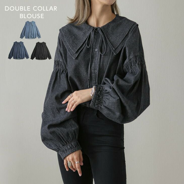 ブラウス 長袖 トップス ボリューム袖 フェミニン ブラウス 長袖 トップス ボリューム袖 フェミニン ダブルカラー ギャザー レディース おすすめ トレンド フリーサイズ メール便 2025秋新作 【lstp208-352】【即納:1-5営業日】【送料無料】ヤ込1