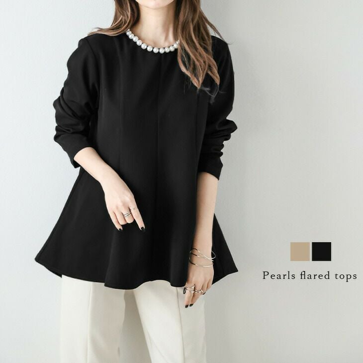 フレアトップス シャツ 大型パール プルオーバー 長袖 【春夏半額SALE対象】 フレアトップス シャツ 大型パール プルオーバー 長袖 入学式 卒業式 トップス レディース ブラック メール便 2025春夏新作 【lstp210-366】【即納:1-5営業日】【送料無料】ユ込3