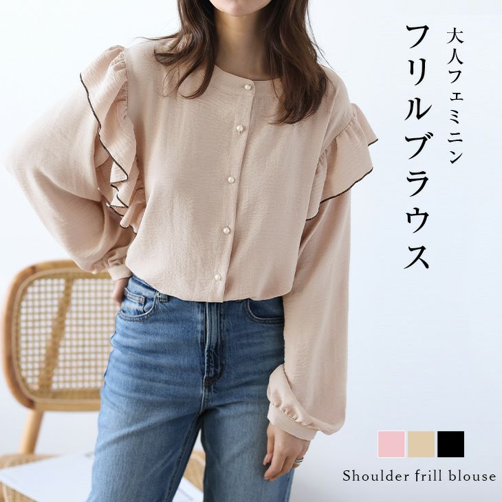 フリルブラウス ショルダーフリル ノーカラー パールボタン フリルブラウス ショルダーフリル ノーカラー パールボタン 長袖 トップス レディース おすすめ おしゃれ ブラック フリーサイズ メール便 2025秋新作 【lstp212-348】【即納:1-5営業日】【送料無料】メ込1