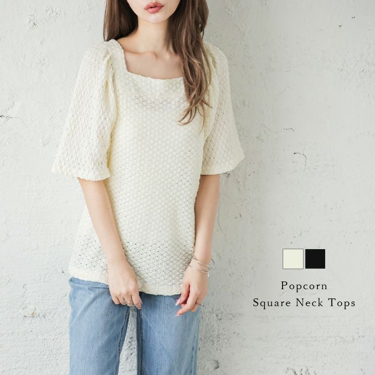 ポップコーントップス スクエアネック カットソー 半袖 通気性 ポップコーントップス スクエアネック カットソー 半袖 通気性 トップス レディース デコルテライン 柔らか ポコポコ おすすめ おしゃれ 可愛い ブラック フリーサイズ メール便 2025春夏新作 【lstp301-340】【即納:1-5営業日】【送料無料】ユ込3