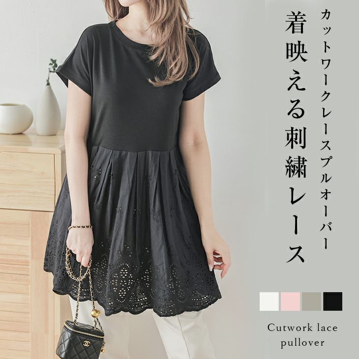 プルオーバー カットソー 刺繍レース 半袖 トップス プルオーバー カットソー 刺繍レース 半袖 トップス フレア フレンチスリーブ レディース おすすめ おしゃれ ブラック メール便 2025春夏新作 【lstp301-343】【即納:1-5営業日】【送料無料】ユ込3
