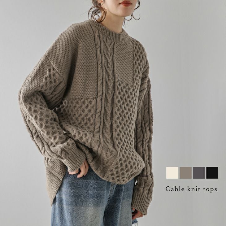 ニット ケーブルニット アシンメトリー ニットトップス ニット ケーブルニット アシンメトリー ケーブル柄 ニットトップス ラウンドネック レディース おすすめ おしゃれ ブラック 2025春夏新作 【lstp301-365】【即納:1-5営業日】【送料無料】宅込