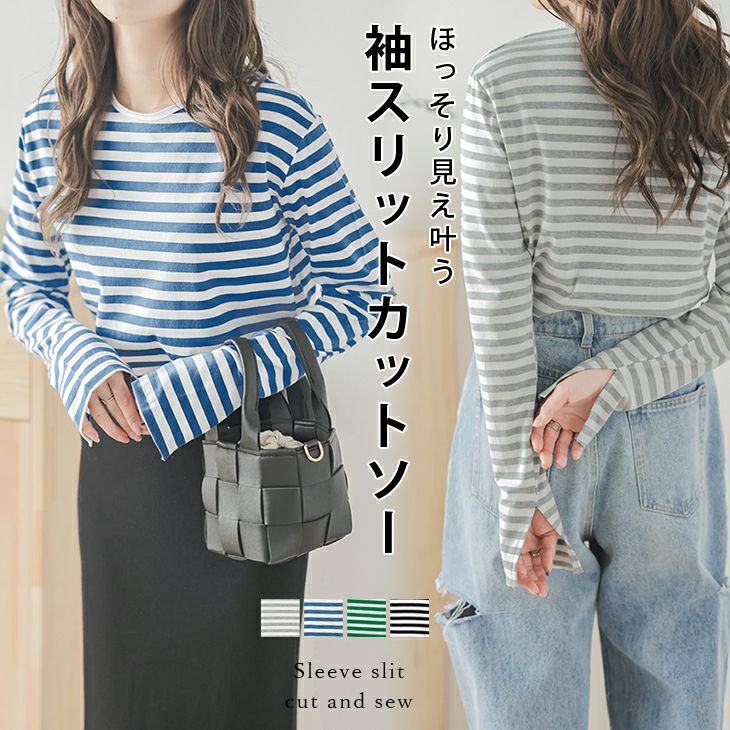 袖スリットカットソー カットソー ボーダー インナー 柔らかい 袖スリットカットソー カットソー ボーダー インナー 柔らかい 薄手 長袖 トップス レディース おすすめ おしゃれ ブラック メール便 2025春夏新作 【lstp302-332】【即納:1-5営業日】【送料無料】ユ込2