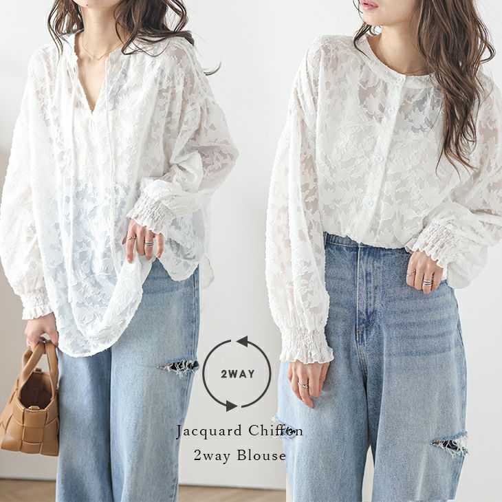 前後2WAYジャガードレースカフタンブラウス かわいい きれいめ 前後2WAYジャガードレースカフタンブラウス かわいい きれいめ お洒落 エレガント 透かし 長袖 韓国ファッション 春夏新作【lstp302-352】【即納:1-5営業日】【送料無料】ユ込3